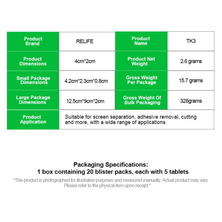 RELIFE TK3 100pcs/Set Phone Repair Blades for Screen / Adhesive Removal