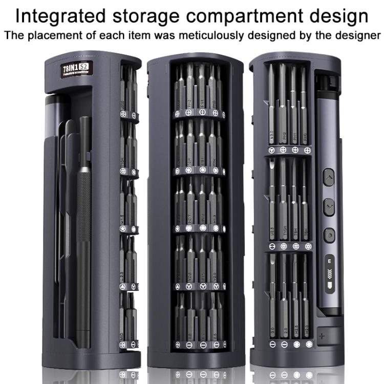 1. 78-in-1 Complete Repair Kit: All essential bits and tools for phones, tablets, laptops, watches, and glasses 2. 5 Adjustable Torque Settings: Prevents screw stripping and ensures precision 3. 4 LED Work Lights & LED Display: Illuminates workspace and shows real-time status 4. Integrated Storage Case: Neat organization for all bits and accessories 5. Rechargeable 350mAh Battery and Aluminum Alloy: Long-lasting performance with premium durability