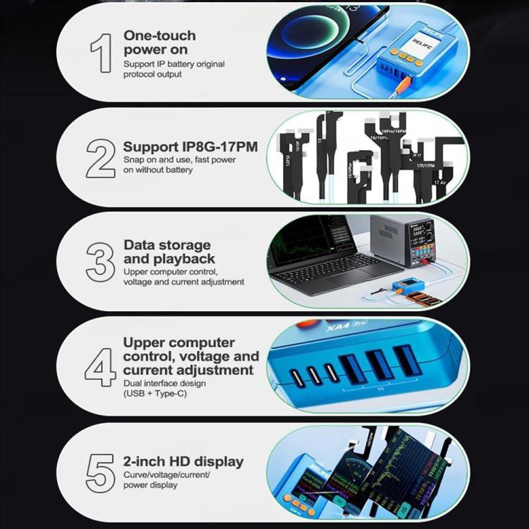 1. XA4 Pro one-touch power cable, solve the problem of automatic restart and screen flashing and inability to boot, for iPhone 8G to 17Pro Max