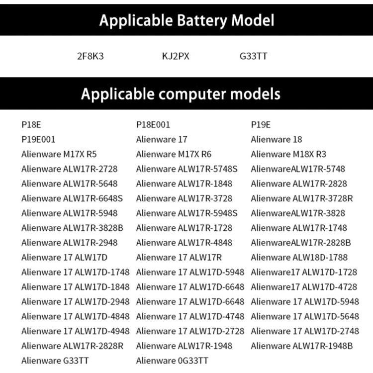 6. Compatible part numbers: 2F8K3 02F8K3 G33TT 0G33TT KJ2PX 0KJ2PX