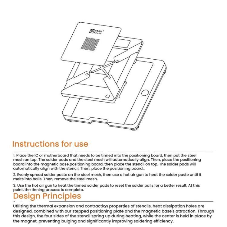 3. Sturdy Magnetic Reballing Platform: A strong magnetic base is included to securely hold the positioning plates and logic boards in place, preventing movement and improving soldering accuracy.