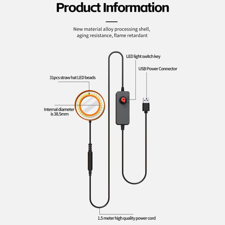 5. Professional Microscope auxiliary lighting: 5V USB port can be connected to a variety of chargers, charging treasure